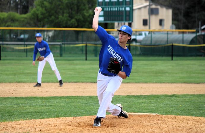 Wildwood Catholic freshman Andrew Badlt pitches in the fourth inning.