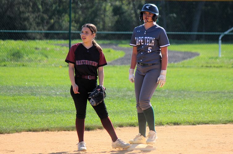 Cape May Tech's Ginger Radzieta pulls into second base.