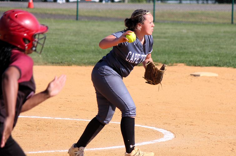 Cape May Tech's Emma Oravits delivers a pitch.