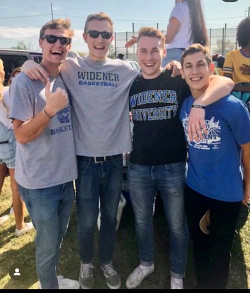 Connor Laverty (second from left), with (from left) Ocean City teammate Noah Gillian and Widener teammates Peter Gard and Pat Holden.