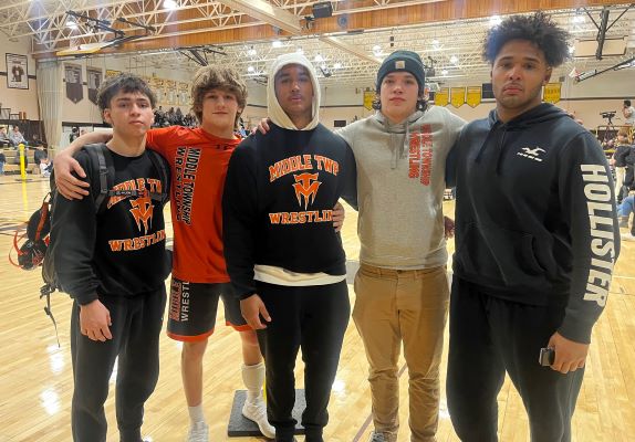 Middle Township had five wrestlers advance to the Region 8 Tournament. They include (from left): Dontae Kelly, Tyler King, Shaun Watkins, Max Adelizzi and Maurice Matthews.
