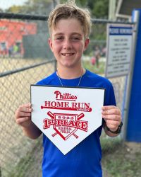 The Phillies Home Run Derby is a hitting competition in which participants receive a certain number of points based on how far they hit each of the pitches tossed to them through a pitching machine. The two two place winners at a local competition advance to the regional event, with the winners from that competition qualifying for the finals at Citizens Bank Park.
